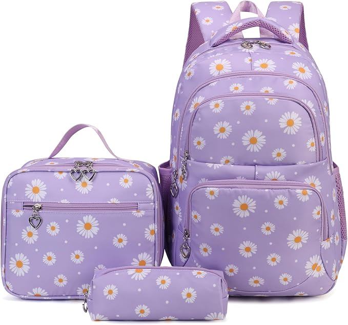 - Goldwheat Daisy Printed Backpack Set: Includes backpack, lunch pack, pencil case; stylish, durable, perfect for school.
