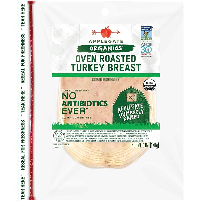 - Applegate Organic Oven Roasted Turkey Breast: tender, flavorful, nitrate-free, humanely raised, ready-to-eat perfection.